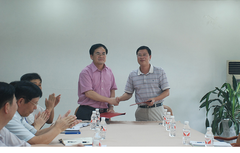我院周钦院长(右二)与右江民族医学院副校长农乐根签订教学协议。(李关秀摄)