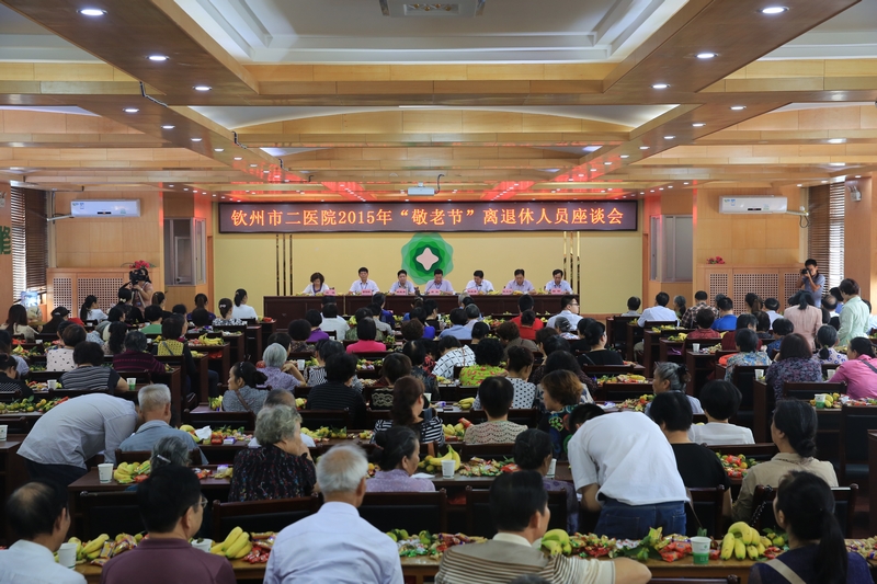 钦州市第二人民医院于10月16日下午召集医院离退休职工举行了2015年敬老节座谈会,医院领导、临床科室主任及退休职工共230余人参加了座谈会。