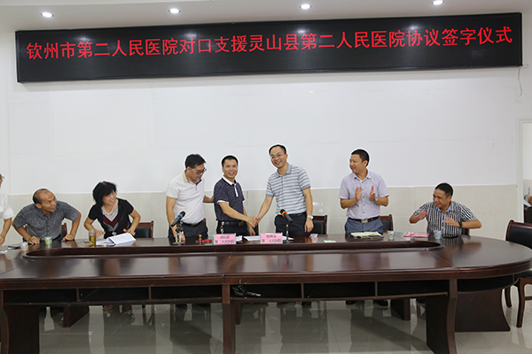 8月3日至4日,我院分别与灵山县第二人民医院、浦北县人民医院举行城乡医院新一轮对口支援签约仪式。我院副院长陆永光带领医务部、医院发展部等相关科室负责人前往上述两家受援医院签署了对口支援协议,并深入受援医院业务科室了解技术需求等。