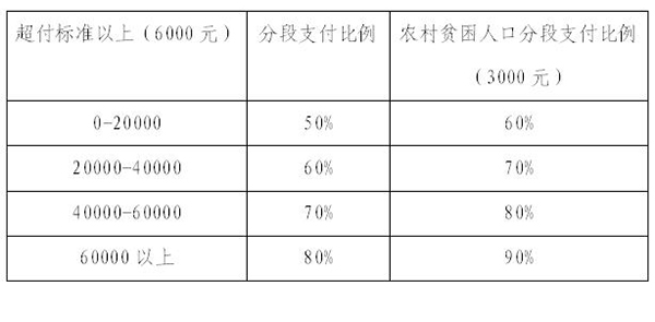 农村贫困人口(包括建档立卡贫困人口、不在建档卡范围内的农村低保对象、农村特困人员和孤儿)参保人员住院治疗的,在住院治疗基金最高支付限额以下基本医疗保险医疗费分担支付表的基础上提高报销比例5%。