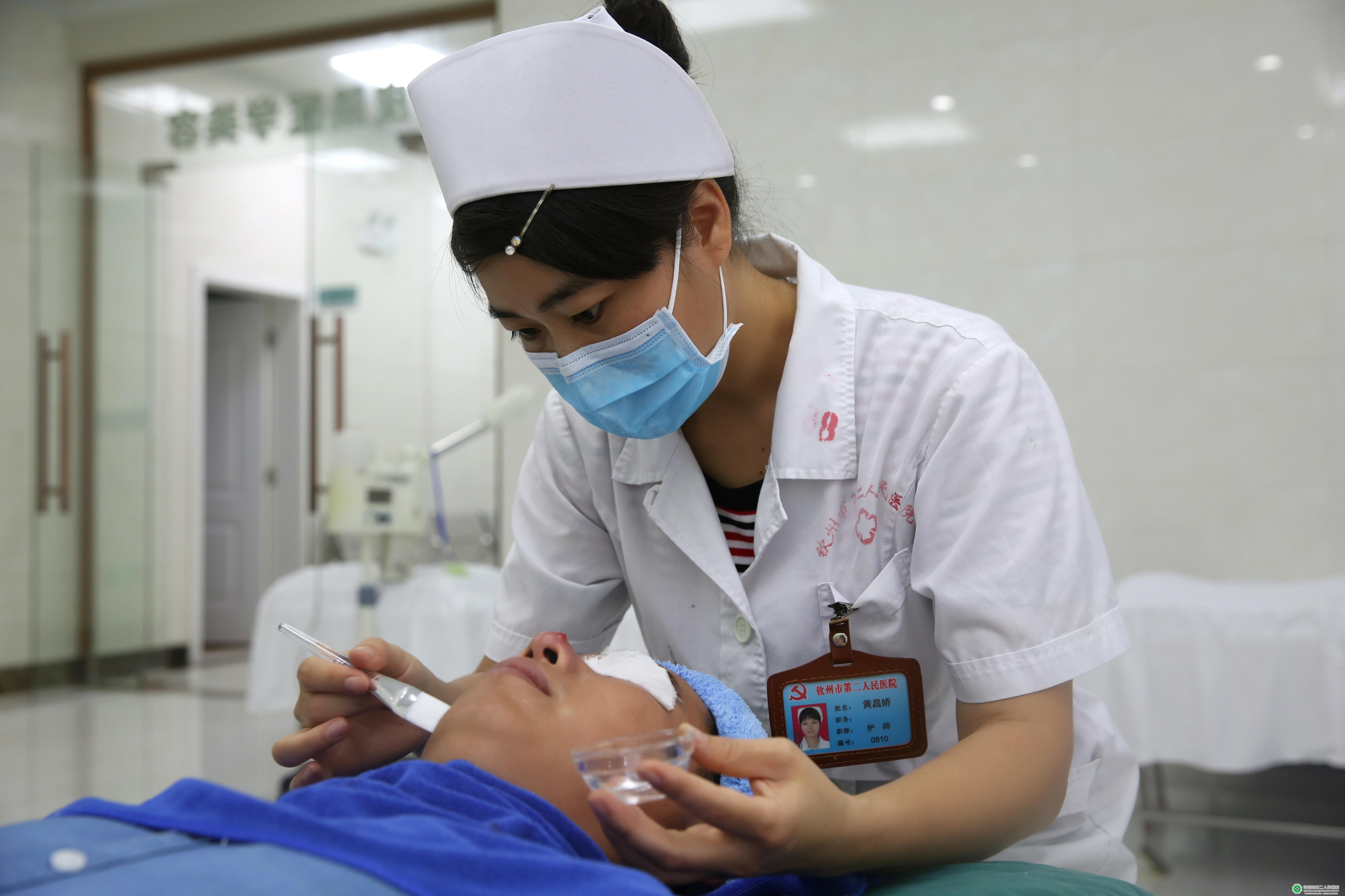 (医务人员正用不同浓度的果酸治疗痤疮)
