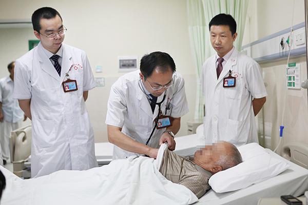 陆永光(左二)在为病人查体