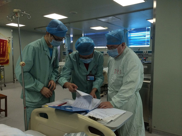庞晓军(右一)在检查病人资料