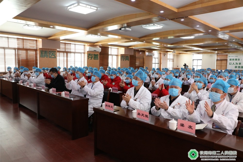 当天上午,市人民政府副市长黄毅,市卫生健康委主任郑琥出席了誓师动员大会。钦州市第二人民医院院长廖振南、党委书记陆永光、副书记刘绍光、纪委书记庞纯宗,副院长杜正隆、洪泽文、许承琼、吴天俊,总会计师梁友,以及全院中层干部、党支部书记共200余人参加了誓师动员大会。