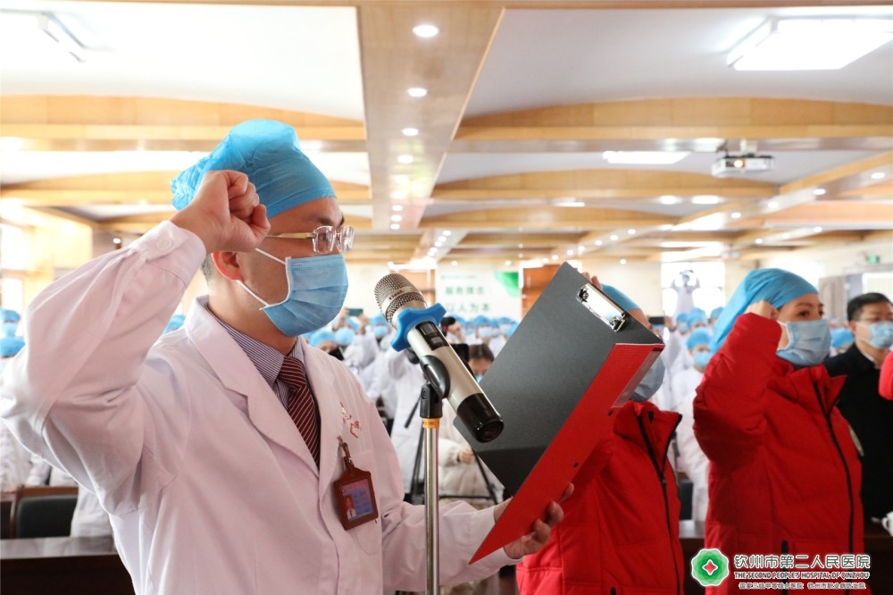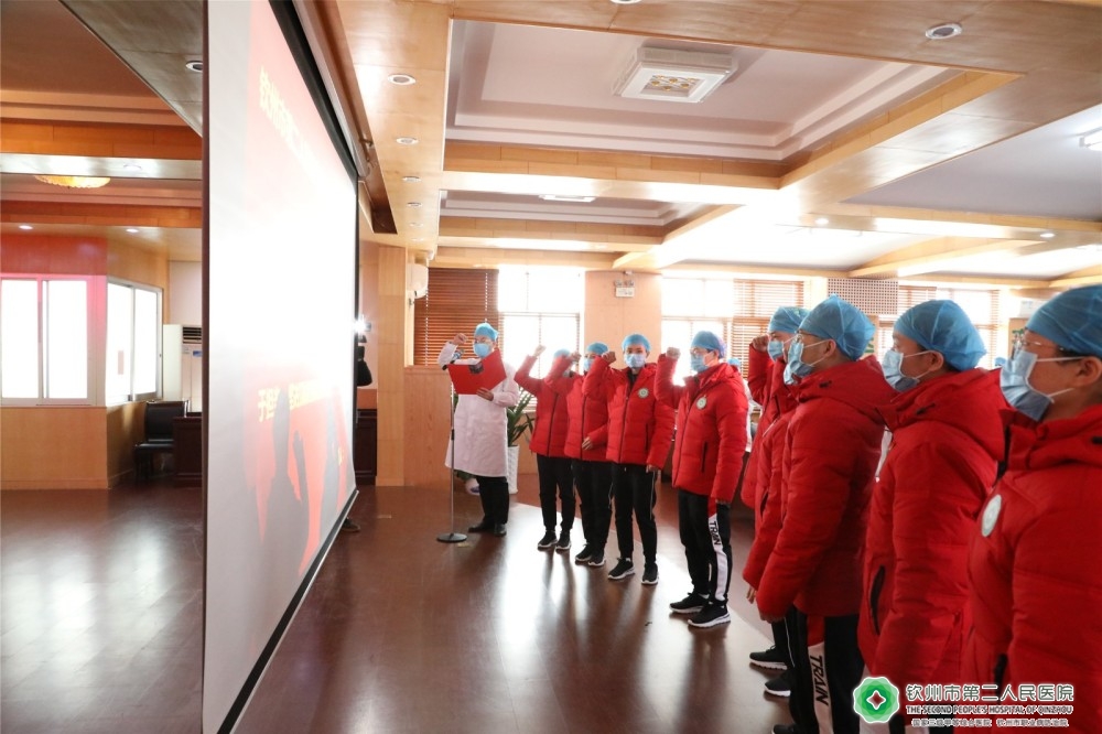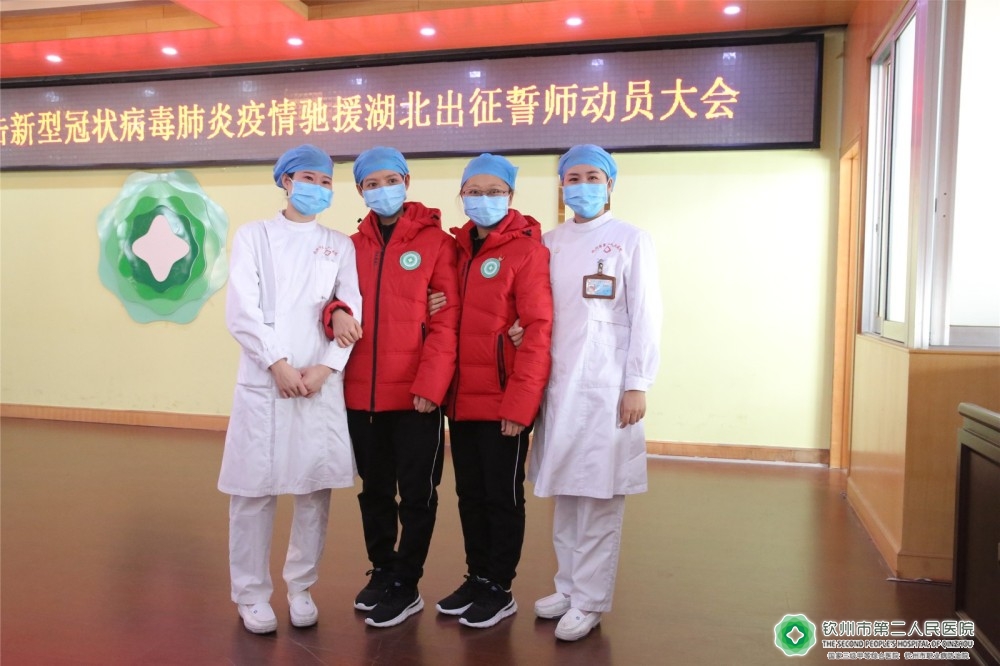 1月30日上午,钦州市第二人民医院举行“抗击新型冠状病毒感染的肺炎疫情驰援湖北出征誓师大会”,我院9名医护人员将与其它医院的5名医务人员一起成为钦州首批、广西第二批援助湖北医疗队驰援千里之外的湖北,共战疫情。我院医疗队共有3名医生、6名护士组成。