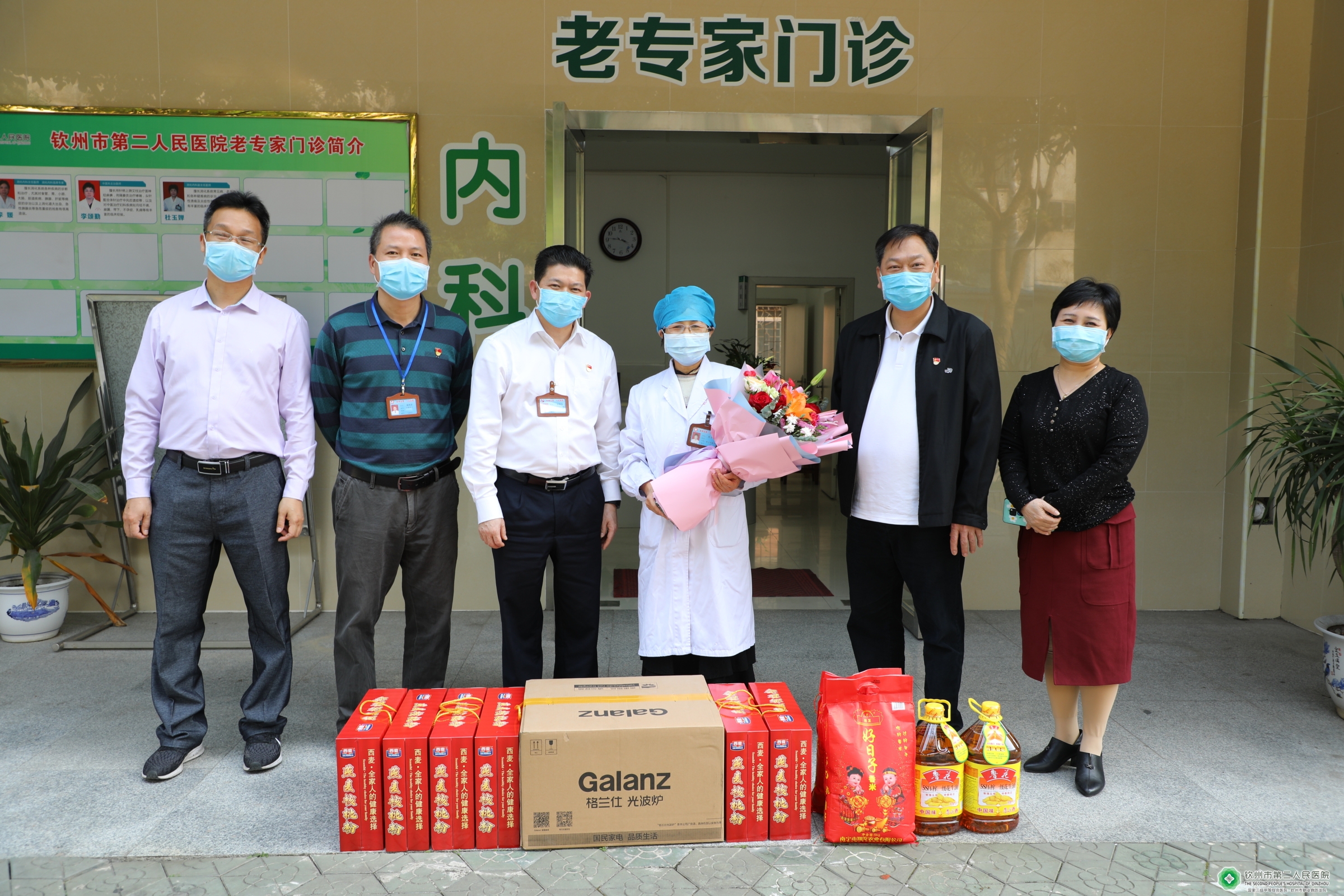 2月25日、26日,钦州市第二人民医院党委开展看望慰问医院驰援湖北医疗队队员家属活动,院党委书记陆永光,党委副书记、院长廖振南,党委委员、纪委书记庞纯宗,党委委员、副院长杜正隆,副院长洪泽文,党委委员、副院长吴天俊,党委委员、总会计师梁友,党委委员、党办主任郑小丽分为两组,带领院办、医务部、护理部等科室负责人先后看望慰问了我院驰援湖北医疗队队员:刘育丽、宋丽丽、钟昌零、曾能永、何芳、吕永杰、陈欢海、郑梅邦、李祉桄家属,送上自治区党委、政府和我院精心准备的慰问品,向医疗队队员以及他们的家属表示亲切慰问和崇高敬意。