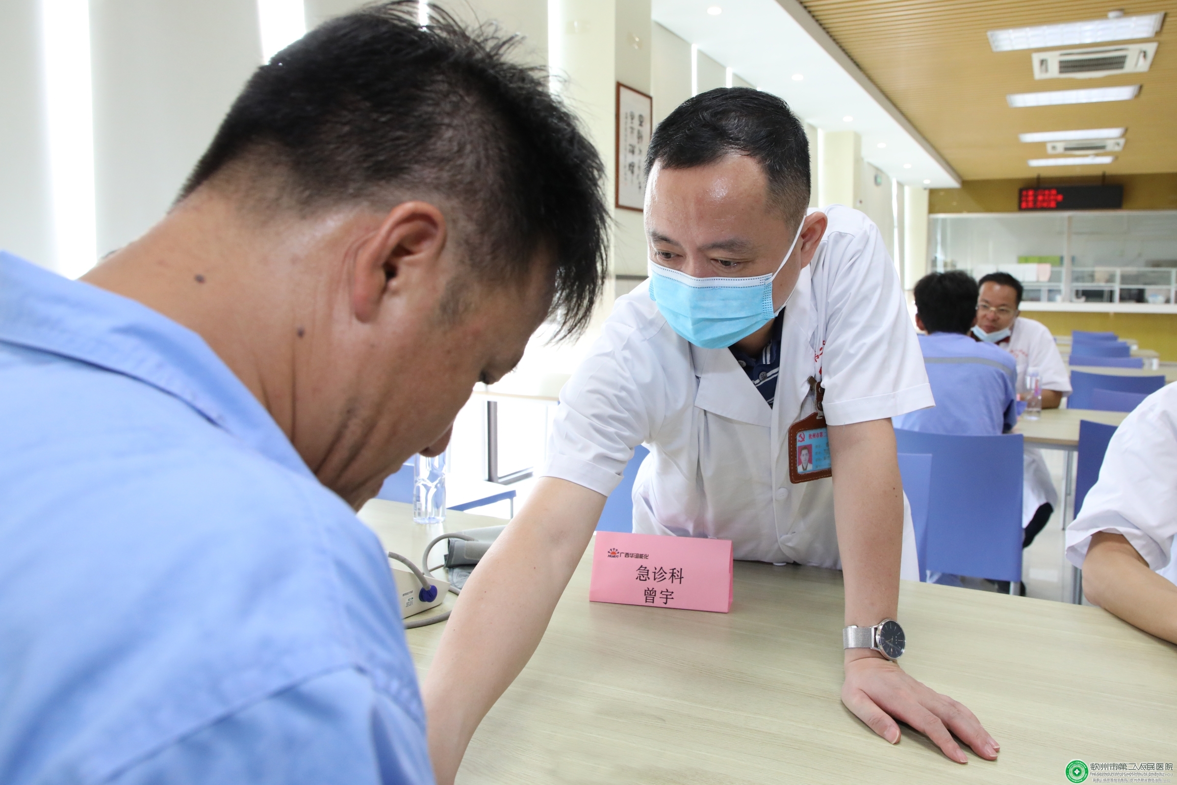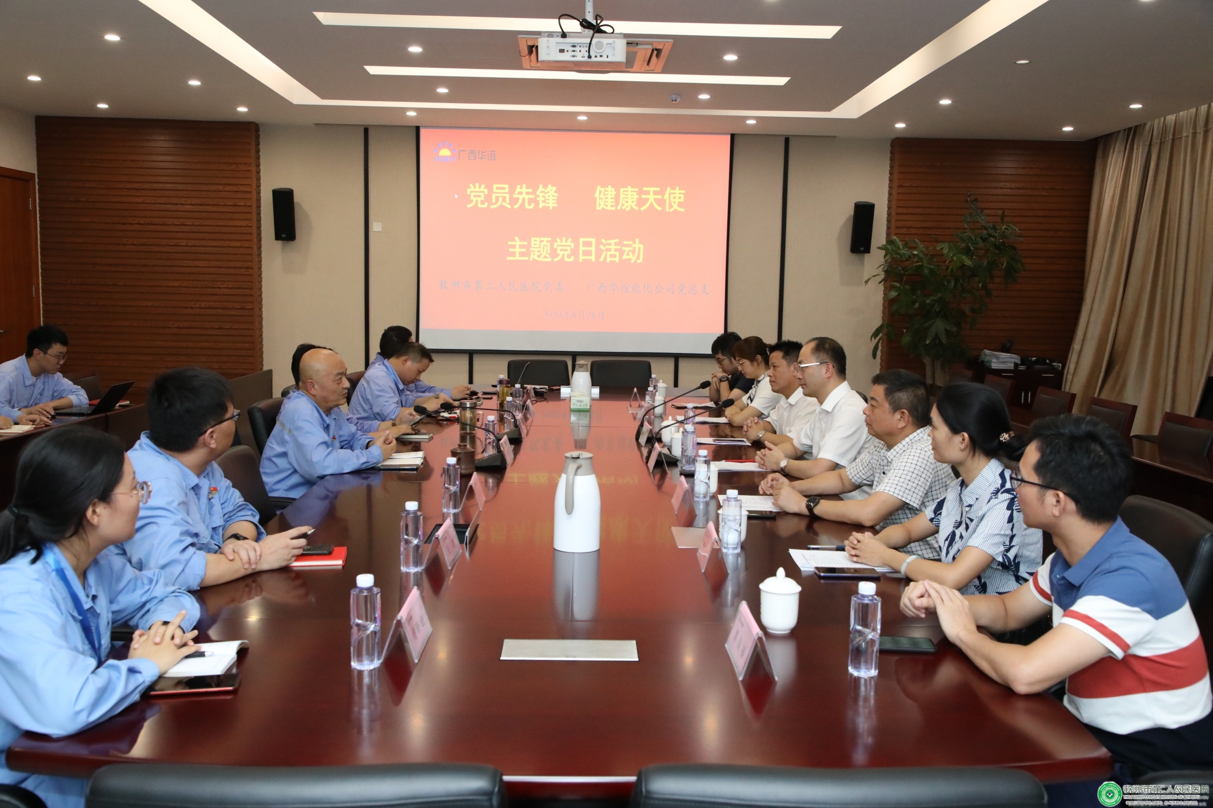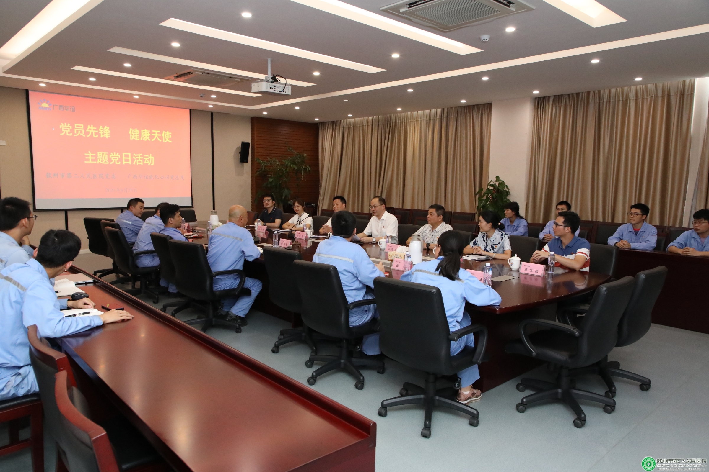 8月28日下午,钦州市第二人民医院党委联合广西华谊能源化工有限公司党总支开展了“党员先锋、健康天使”主题党日活动。我院党委书记陆永光,党委副书记刘绍光,党委委员、副院长许承琼,党委委员、党办主任郑小丽,广西华谊能源化工有限公司党总支书记朱伟敏出席活动。由我院第一、第三、第六等党支部和体检部负责人组成的医疗专家团队与广西华谊能源化工有限公司员工代表共同参加了此次活动。