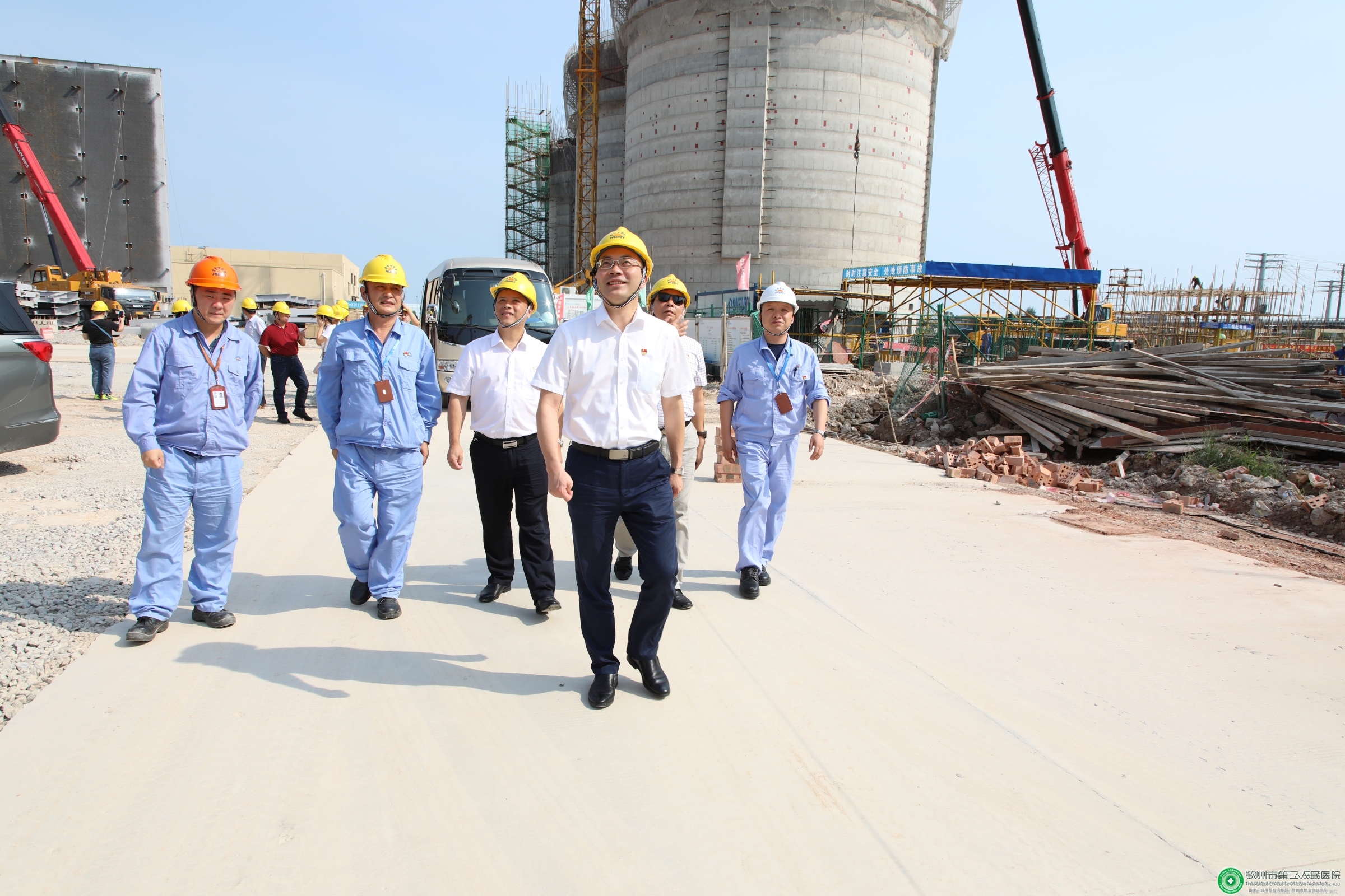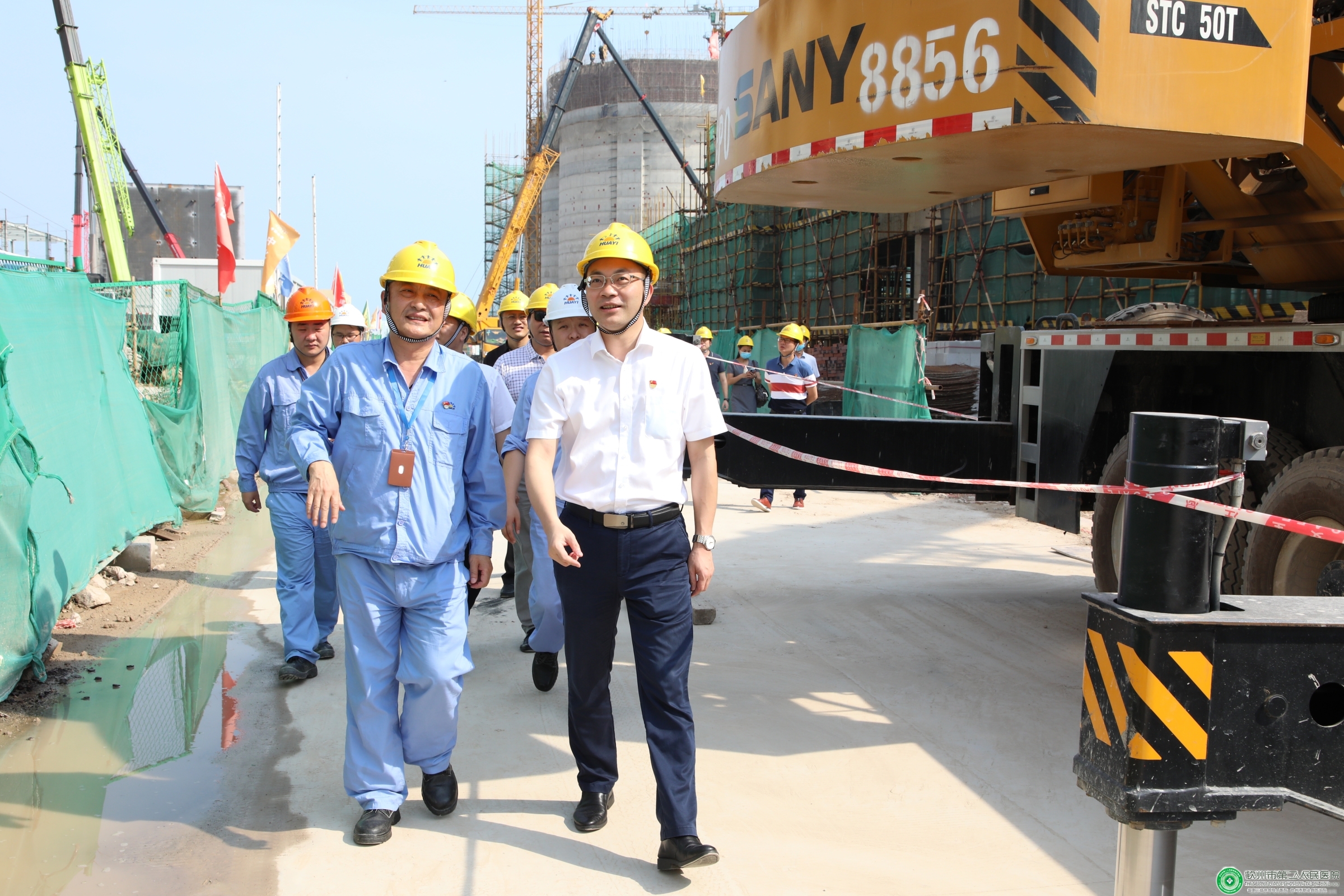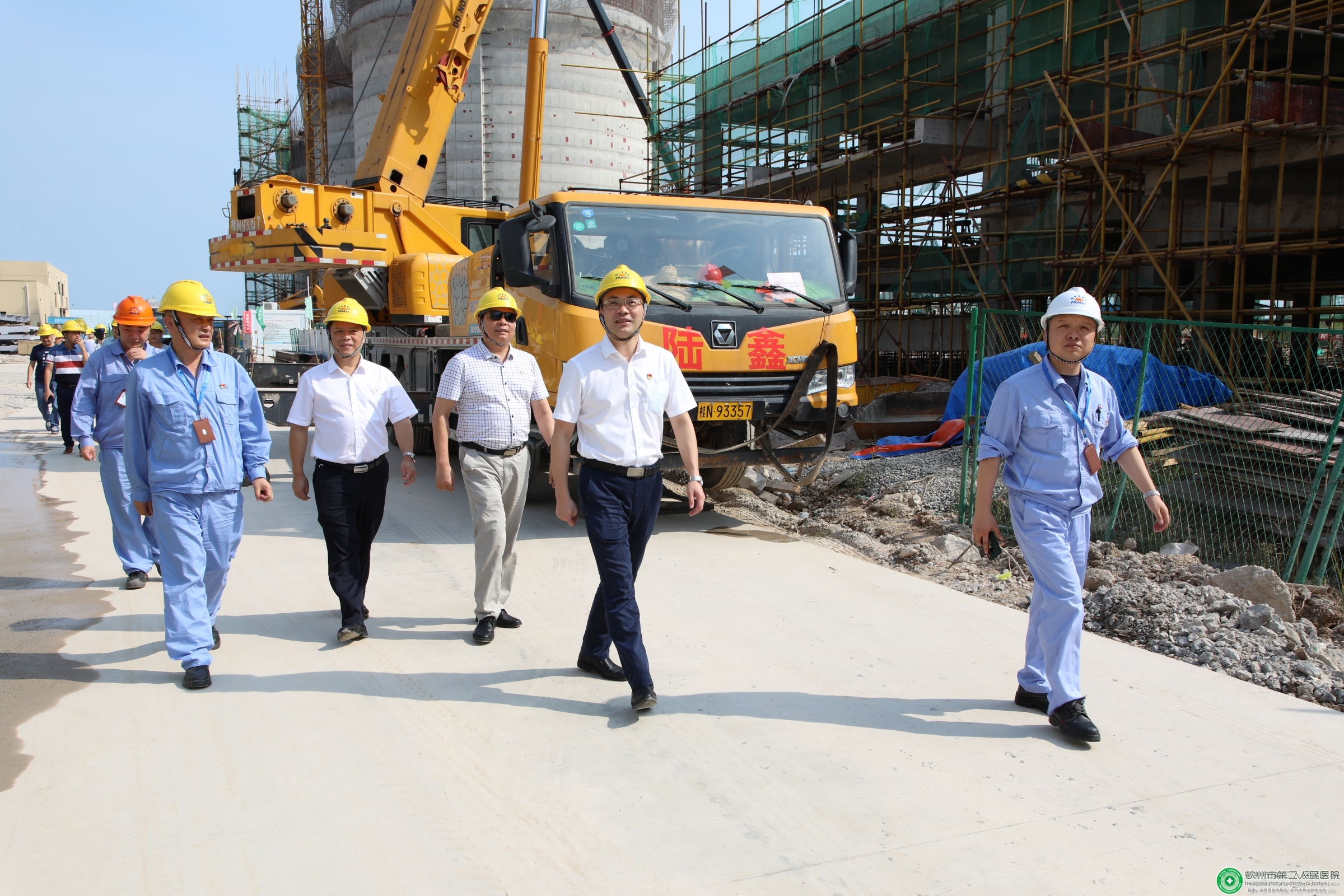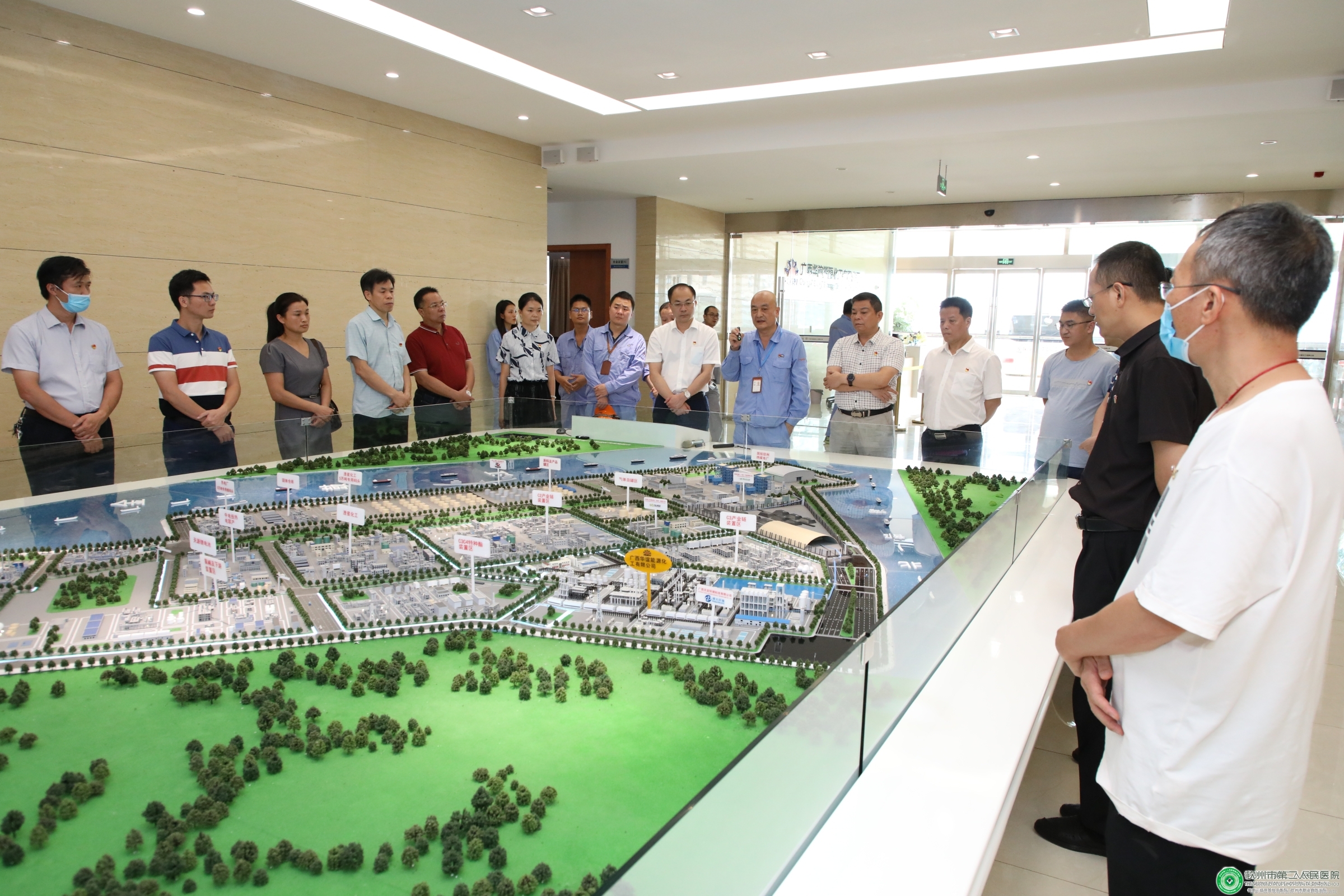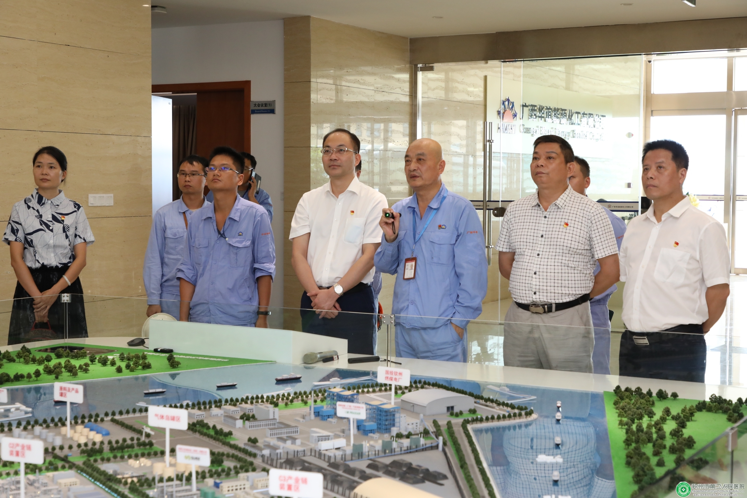 参观活动中,陆永光书记一行在广西华谊能源化工有限公司党总支书记朱伟敏的讲解介绍下,先后来到该公司前厅和项目工地,现场观看了项目沙盘和4000吨吊机,对项目进行了详细了解。