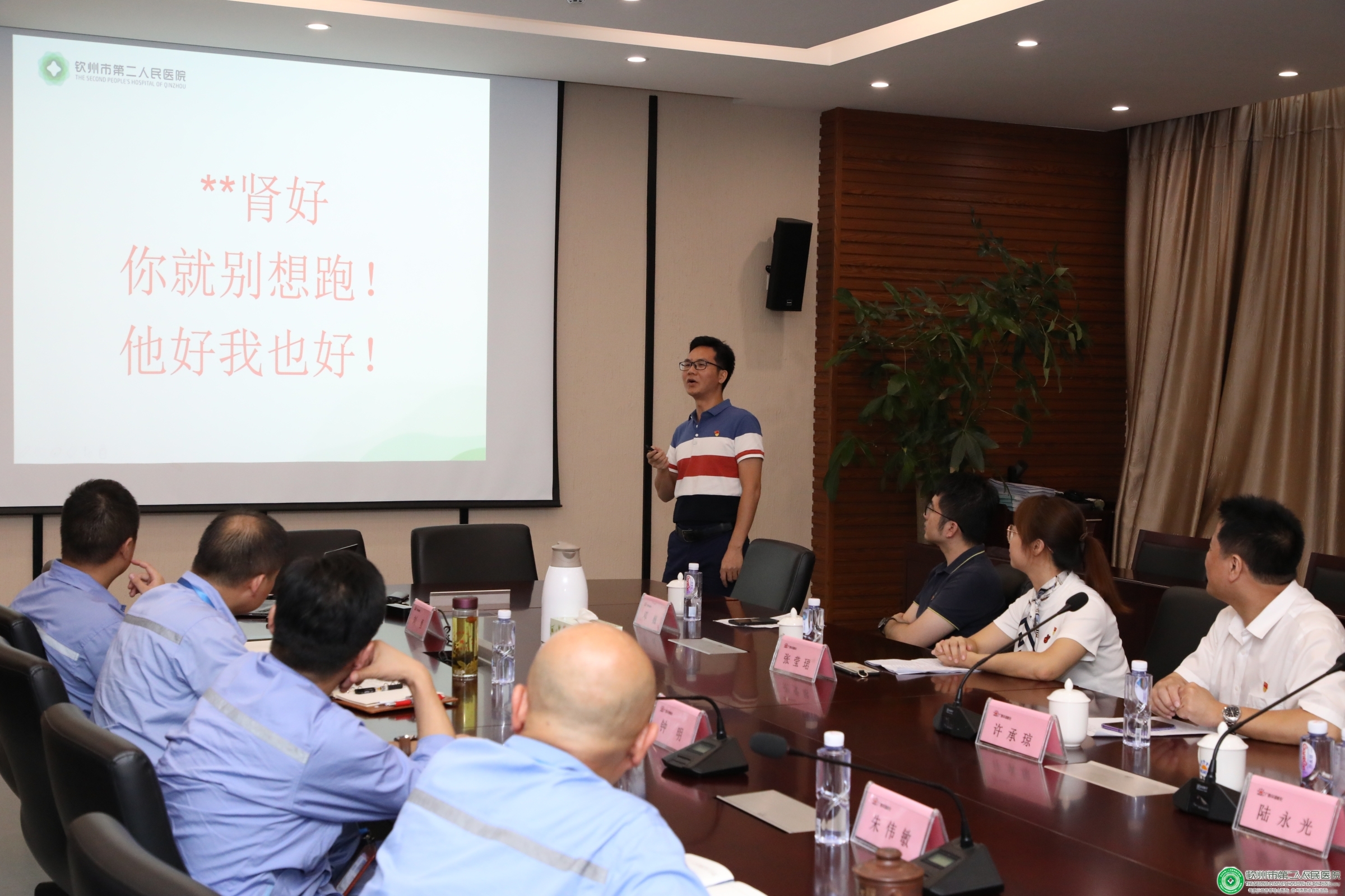 随后,我院第八党支部书记、院办副主任张莹珺,第二十党支部党员、营养科副主任、肾内科医生覃显福先后以《特色二医 为您的健康保驾护航——带您走进钦州市第二人民医院》、《您了解自己的肾脏吗?》为题,进行了健康讲座。