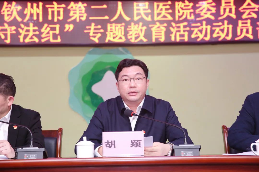 市卫生健康委党组书记、主任胡颎作专题教育活动动员部署讲话时强调,一是要以专项行动的模式来部署要求和全面推进,以科室为单位,从个人的党性党风、医德医风、纪律要求来自查自纠,认真的剖析在医德医风、遵纪守法等方面有哪些不足和存在问题。二是在建章立制上下功夫,把制度的笼子扎实扎牢,重整行装再出发,构建医疗卫生系统的清廉政治生态。三是要拿出实实在在的成效来检验这个专题教育的成果,要以百姓是否满意、市委市政府是否满意、医疗卫生系统的医德医风有没有提高来作为专题教育的试金石。希望通过大家的努力,把市二医院的医疗队伍建设成为让党放心、人民满意、技术过硬、作风优良的引领北部湾沿海医疗中心的骨干力量。也相信在医院党委的正确领导下,市二医院的广大干部职工一定能够通过这次主题教育活动,做到政治业务双促进、双丰收。