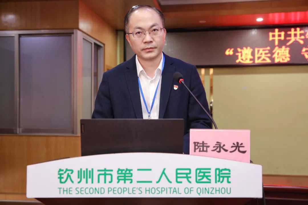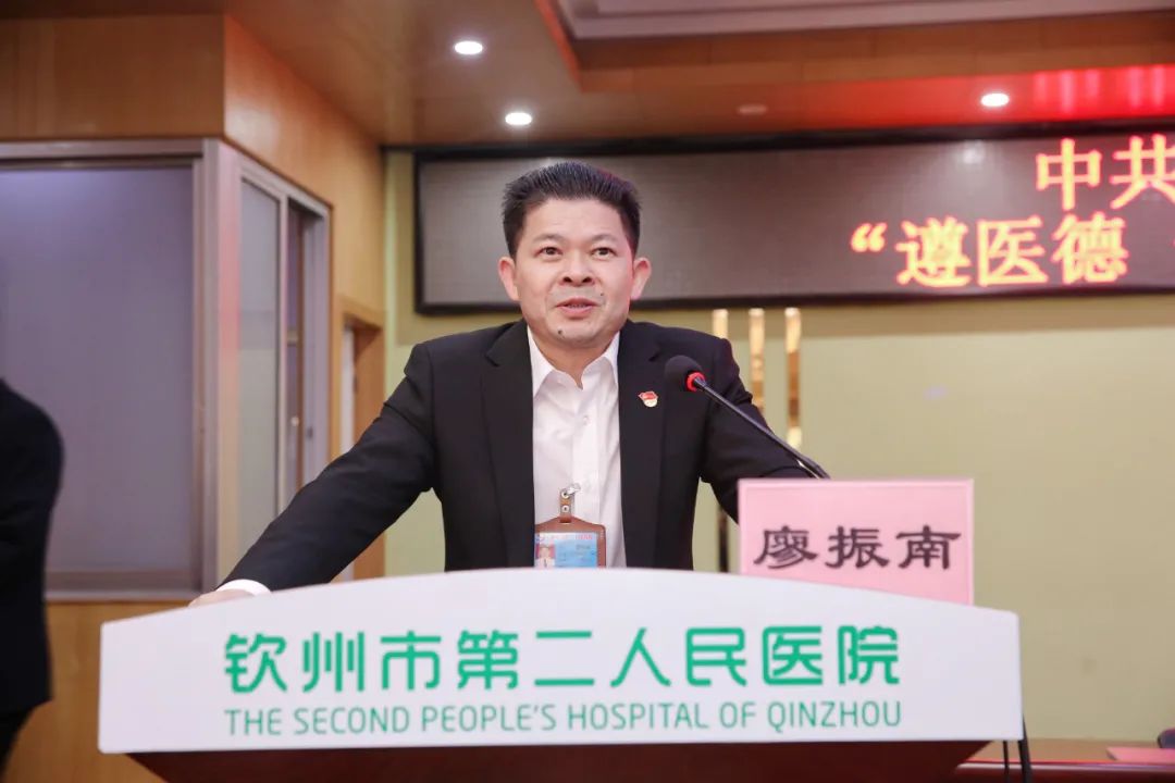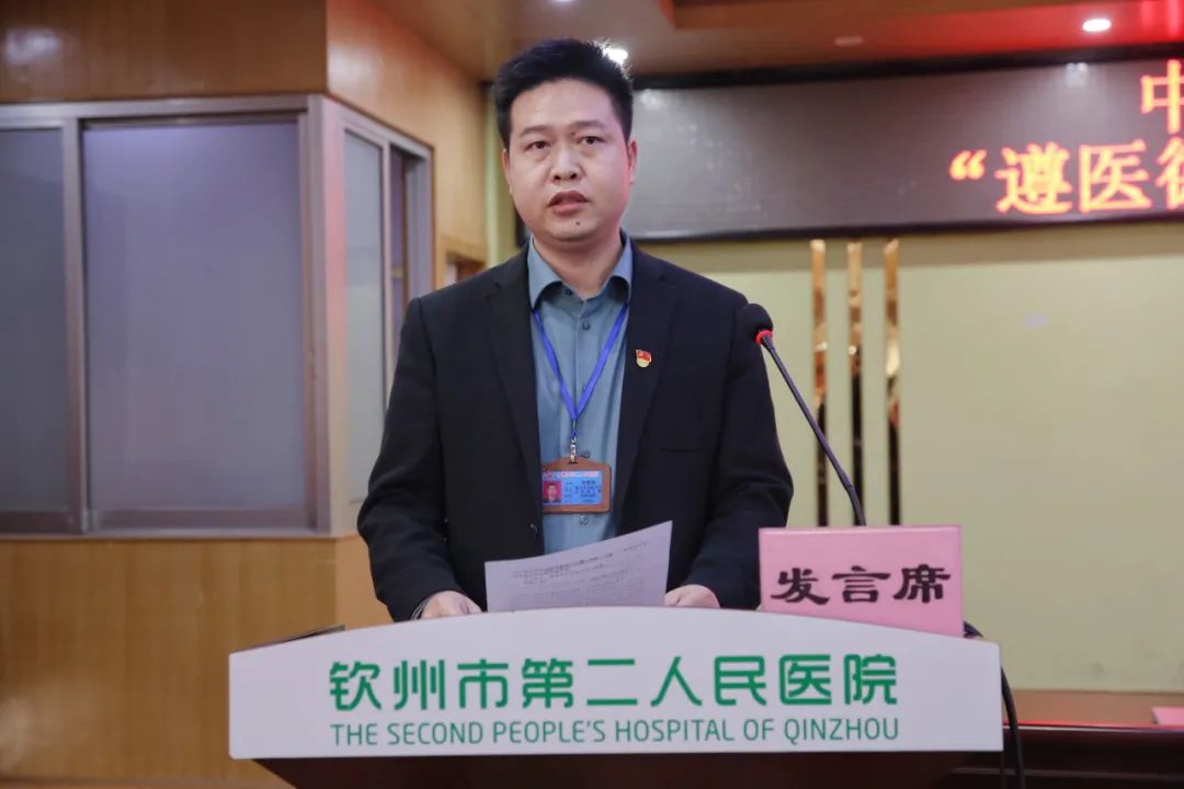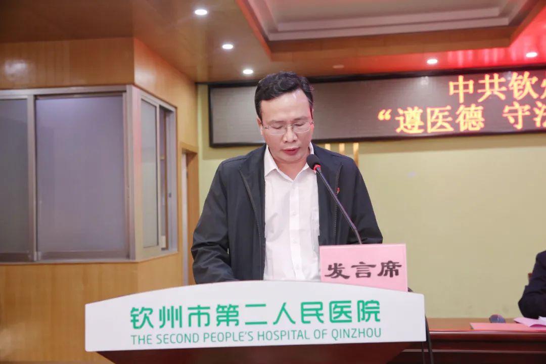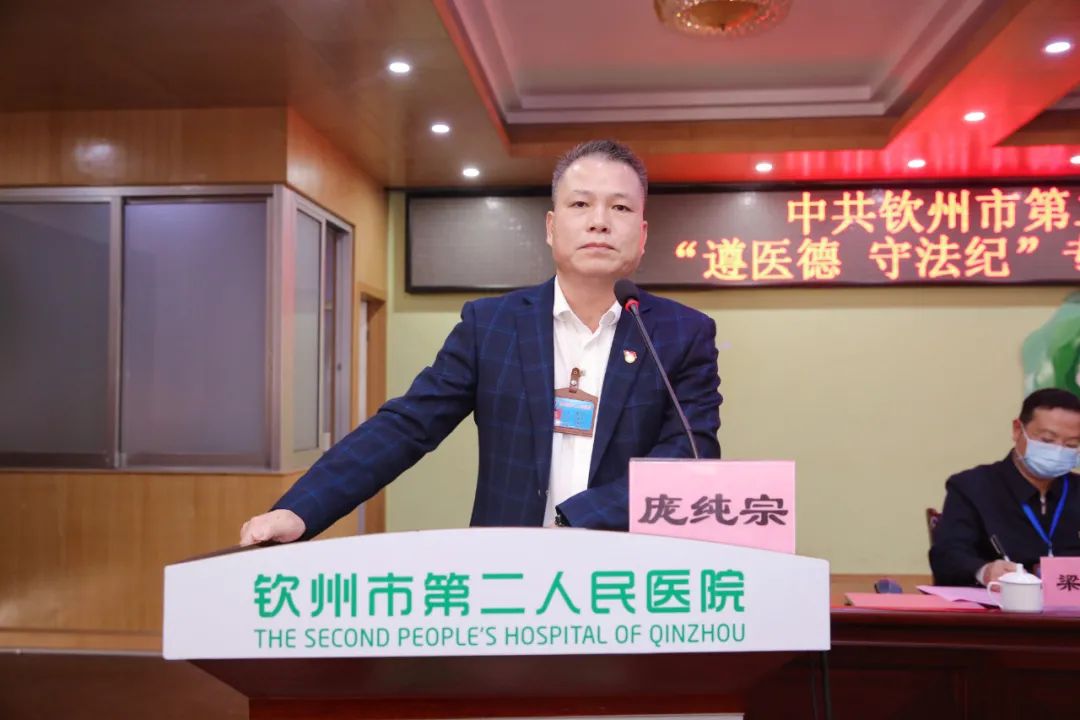 会上,与会人员集中观看廉政警示教育视频,接着,我院纪委书记庞纯宗宣读《中共钦州市第二人民医院委员会关于开展“遵医德 守法纪”专题教育活动实施方案》。随后,第八党支部书记韦莹德及第十四党支部书记唐真武分别作表态发言。