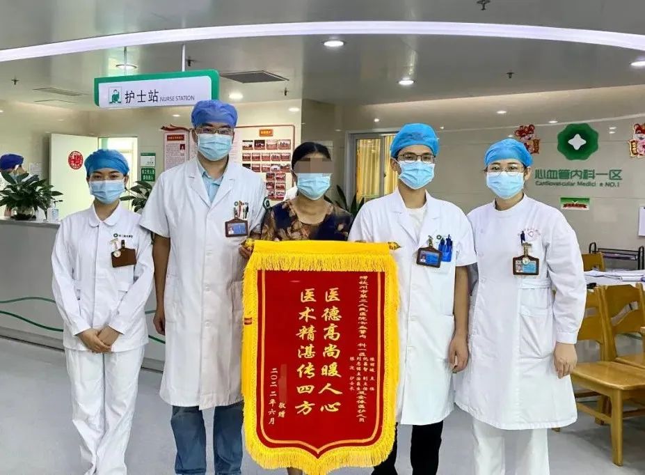 ▲患者家属向心血管内科一区医护人员赠与感谢锦旗