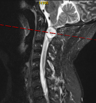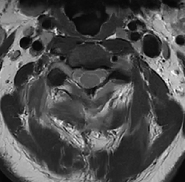 高位颈椎管内肿瘤,一般是指发生在颈椎的第1到4节段的椎管内肿瘤,这些肿瘤可以包括脊髓髓内的星形细胞瘤、室管膜瘤、脊髓髓外的脊膜瘤、神经鞘瘤等。由于其毗邻延髓,具有特殊解剖生理特点,易并发四肢瘫痪和呼吸功能障碍,在诊断和治疗上存在较大的困难。表现的症状比较严重而突出。部分患者出现走路不稳,肩背部的疼痛、麻木,双上肢的疼痛、麻木;严重的可以出现肢体的瘫痪、心率呼吸减慢,有的患者甚至可能会出现心跳呼吸骤停这样严重的危害。所以高位颈椎的椎管内肿瘤是一种手术难度比较大,手术风险比较高的肿瘤。