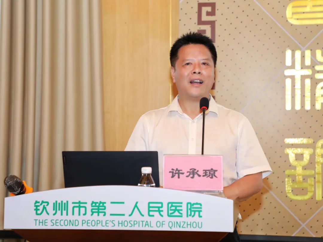 为规范临床医护人员对静脉血栓栓塞症(VTE)预防、诊断与治疗,培养一批具有VTE诊疗能力的专科人才,掌握评估与预防措施,降低VTE发生率,为患者提供更加优质、高效的医疗护理服务。7月7日,我院在二马路院区门诊综合楼三楼会议室召开静脉血栓栓塞症防治暨VTE规范化培训班,会议邀请广西医科大学第一附属医院血管外科主任、博士生导师覃晓教授,广西静脉血栓(VTE)防治联盟秘书杨晗博士进行经验交流与分享,我院副院长许承琼,副院长陈丽媛参加会议并致辞,全院各临床科室代表,VTE高危临床科室主任、骨干近150人参加培训班。