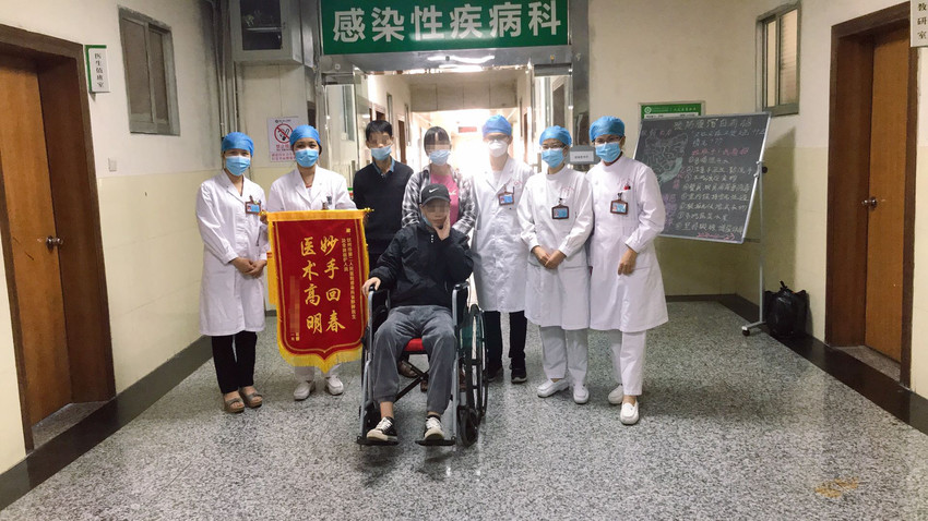 患者入住我院感染科后,专家们立即为患者提供高效诊治,予完善胸部+颅脑CT、腰椎穿刺术积液送检等相关检查,入院不满24小时即最终明确诊断为:结核脑膜脑炎。治疗上给予了积极抗结核、脱水降颅压,并请神经外科会诊后行脑室外引流术。经充分治疗及精心护理后患者逐渐清醒,并逐渐恢复了肢体功能。患者及家属出院时送上锦旗表示感谢。