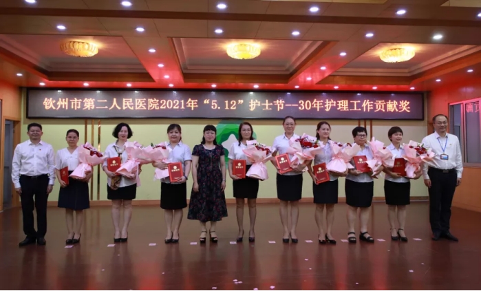 为弘扬南丁格尔精神,致敬白衣天使,在一年一度国际护士节来临之际,5月8日下午,我院召开庆祝2021年“5.12”国际护士节暨表彰大会,158名护士接受表彰。钦州市卫生健康委副主任劳春红、我院党政领导班子出席活动。
