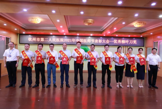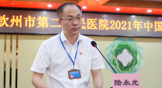 党委书记陆永光宣读《钦州市第二人民医院关于表彰2021年中国医师节医师先进个人的决定》,100名医(技、药)师分别获得“优秀医(技、药)师奖”、优秀柳叶刀奖”、“优秀杏林奖”、“优秀青年医师标兵奖”、“优秀住培医师”称号。他希望受表彰的先进个人珍惜荣誉、再接再厉、再创佳绩。希望全院医师和医技人员以先进为榜样,敬佑生命、甘于奉献、爱岗敬业、奋发进取,为医院建设和发展作出新的贡献!(图文/黄国春 )