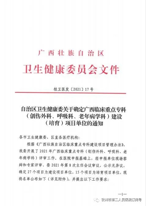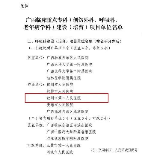 喜讯!我院呼吸科获评广西临床重点专科建设项目单位