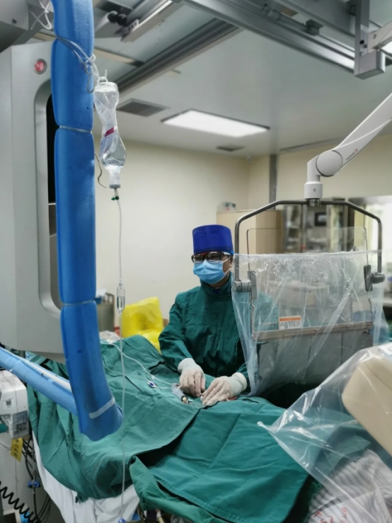 经神经内科三区主任杨开杰、副主任黄渊智带领科室团队对患者行治疗方案评估,实施颅内动脉支架置入术是治疗该患者的最佳方案,经与患者家属积极沟通并取得同意后,神经内科三区医师团队与介入导管室团队密切配合,针对患者病情制定了详尽的个性化手术流程和应急预案,确保患者安全。由于患者病变血管迂曲,微导丝到位困难,极易损伤血管,球囊扩张后易发生动脉夹层及穿支闭塞等严重并发症,因此该例患者手术难度极大,杨开杰主任及其团队凭借着丰富的操作经验和精湛的技术,顺利完成手术,使脑血流恢复,低灌注不足而引起的症状得以解除。