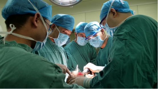 经过详细询问病史并完善相关影像学检查之后,在骨外科二区唐国能主任医师的带领下,专家们对王大姐的病情进行详尽细致的研究和讨论。王大姐左膝关节内侧间室狭窄、内侧半月板及软骨磨损严重,但外侧半月板、前后交叉韧带及髌股关节基本正常,膝关节内侧间室软骨的退变、软骨下骨骨水肿及骨对骨的摩擦是导致她膝关节疼痛的主要原因,只有切除退变的软骨,让骨头不再磨骨头,清除多余的骨赘才能缓解疼痛。为了提高王大姐的生活质量,结合目前最新的诊疗技术,骨外科二区专家们一致决定为王大姐实施保膝手术—内侧单髁置换术。