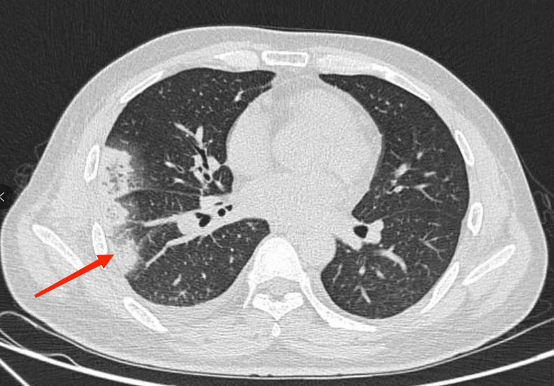 追问杨先生病史,他告知医务人员,今年5月就自行停用了糖皮质激素(肾病综合征的首选治疗用药)。为他重新使用糖皮质激素治疗后下肢水肿以及泡沫尿的症状逐渐缓解,但他的胸部CT提示右肺斑片状密度增高影,且各项血液检查感染指标均升高,结合患者有长期激素使用史(激素可导致免疫力低下,感染风险增高),主管医师考虑肺部存在细菌感染,遂给予抗生素治疗,但患者咳嗽、咳血痰症状并未得到缓解,复查CT提示肺部的炎症亦并未减少。