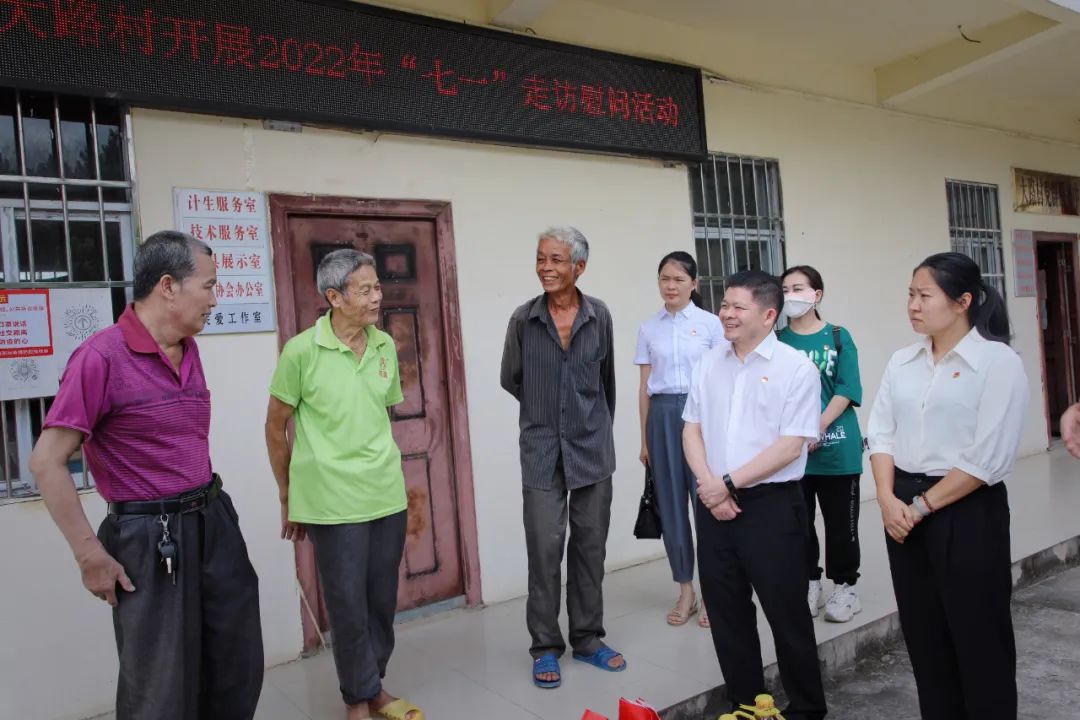 为进一步贯彻钦州“建大港、壮产业、造滨城、美乡村”四轮驱动战略,落实“美乡村”工作部署,不断强化党建引领,助力脱贫攻坚成果巩固拓展同乡村振兴有效衔接,6月20日下午,我院党委副书记、院长廖振南率队到贵台镇大路村开展巩固拓展脱贫成果同乡村振兴有效衔接暨“七一”慰问老党员系列活动。党委副书记、工会主席刘绍光,党委委员、纪委书记庞纯宗,相关科室负责人以及贵台镇党委书记利远远、副镇长庞承国、驻村干部等参加活动。