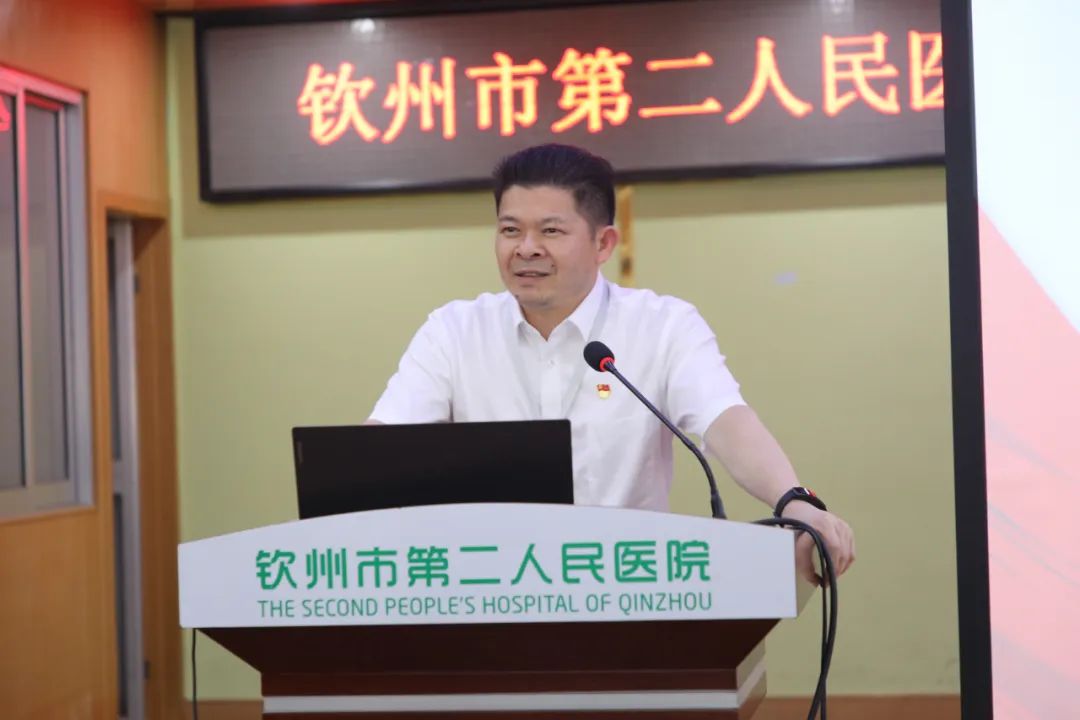 廖振南强调,2017年4月、2021年4月,习近平总书记两次在广西视察时反复指出,“要建设好北部湾港口,打造好向海经济。”总书记的殷殷寄语、切切期许,为钦州续写新时代“海上丝绸之路”新篇章擘画了宏伟蓝图、指明了前进方向。作为一名钦州医疗卫生系统的党员,要主动在“建大港、壮产业、造滨城、美乡村”的建设中及为人民群众生命健康保驾护航中有所作为。要有一副“扛千斤、负万石”的“铁肩膀”,挑得起大梁、扛得起重担、打得了硬仗。强化“无功即是过,不进就是退,慢进也是退”的意识。牢记嘱托、踔厉奋发,立足新发展阶段,贯彻新发展理念,融入新发展格局,全面落实医院规划目标任务,不断为人民群众提供更加优质的卫生健康服务,推动医院卫生健康事业更高质量发展。