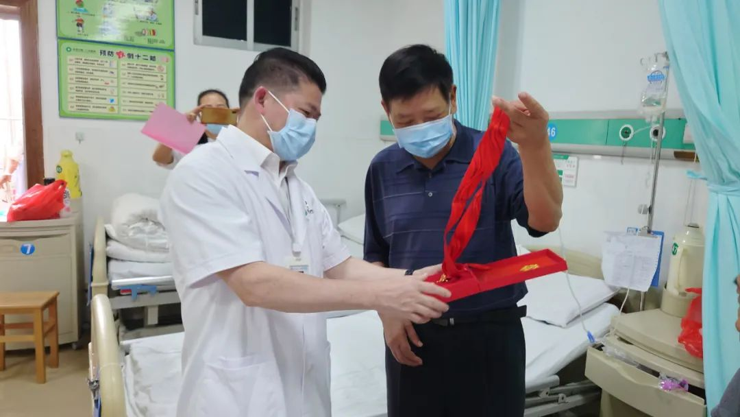 党委副书记、院长廖振南带队走访慰问了正在医院住院的“光荣在党50年”老党员,亲手为老党员颁发“光荣在党50年纪念章”,并送上慰问金。廖振南对老党员为医院做出的积极贡献表示衷心感谢,他仔细询问了解老党员近来的家庭、生活和住院诊疗情况,叮嘱科室医务人员要关心爱护好老党员,细致地为他们做好服务。希望老党员要注意保重身体,继续发挥余热,一如既往地关心和支持医院发展。