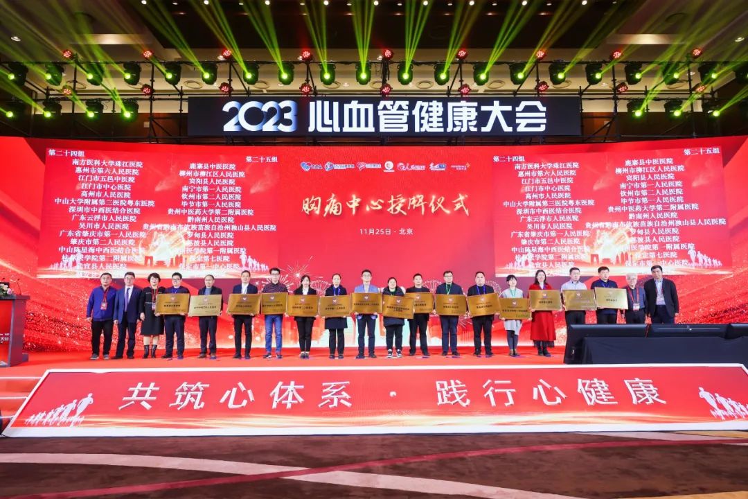 ▲副院长陈丽媛(左八)代表我院上台接受胸痛中心授牌