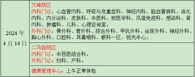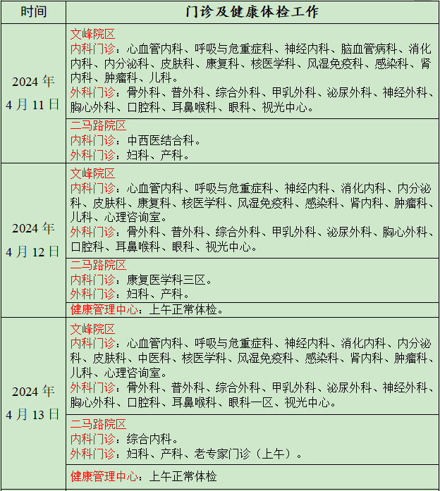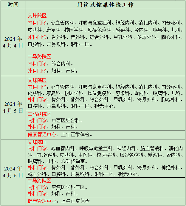 清明节期间门诊及体检安排
