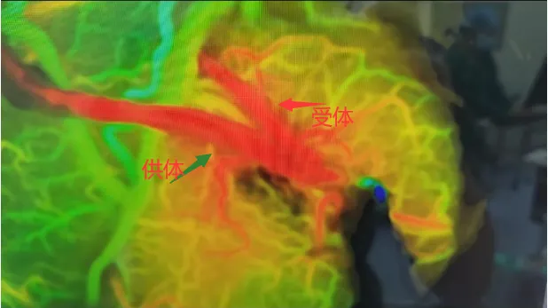这两名患者复诊回到我院脑血管病科,完善各项相关检查及进行充分的术前准备后,吴亮副主任医师团队先后为患者施行了颞浅动脉-大脑中动脉侧侧吻合搭桥+颞浅动脉贴敷术。手术采用线状头皮切口,显微镜下完整分离颞浅动脉主干,在脑组织表面寻找合适的匹配血管,行供受体血管侧侧吻合,荧光造影显示供受体吻合口和受体血管通畅,成功利用颅外血管为颅内脑组织供血,明显改善了脑组织缺血区域的血供,大大降低再出血或再梗死的几率。术后均顺利出院。