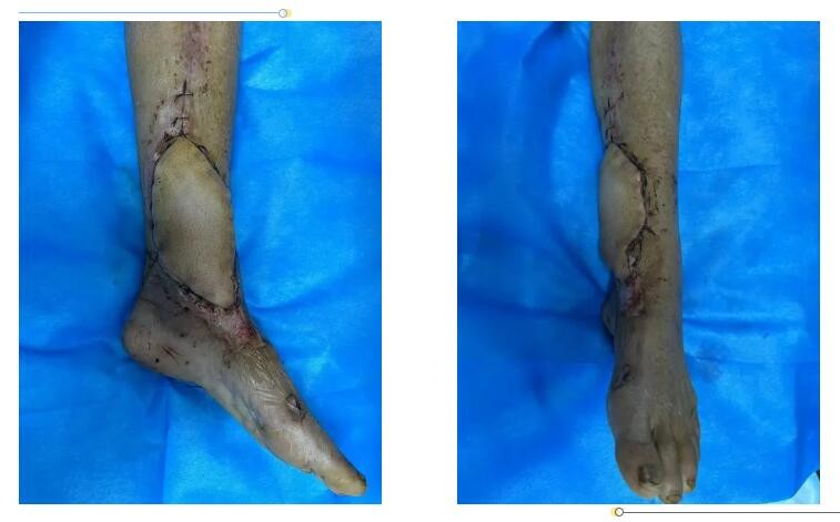 ▲手术后2周,皮瓣血运良好,顺利出院。