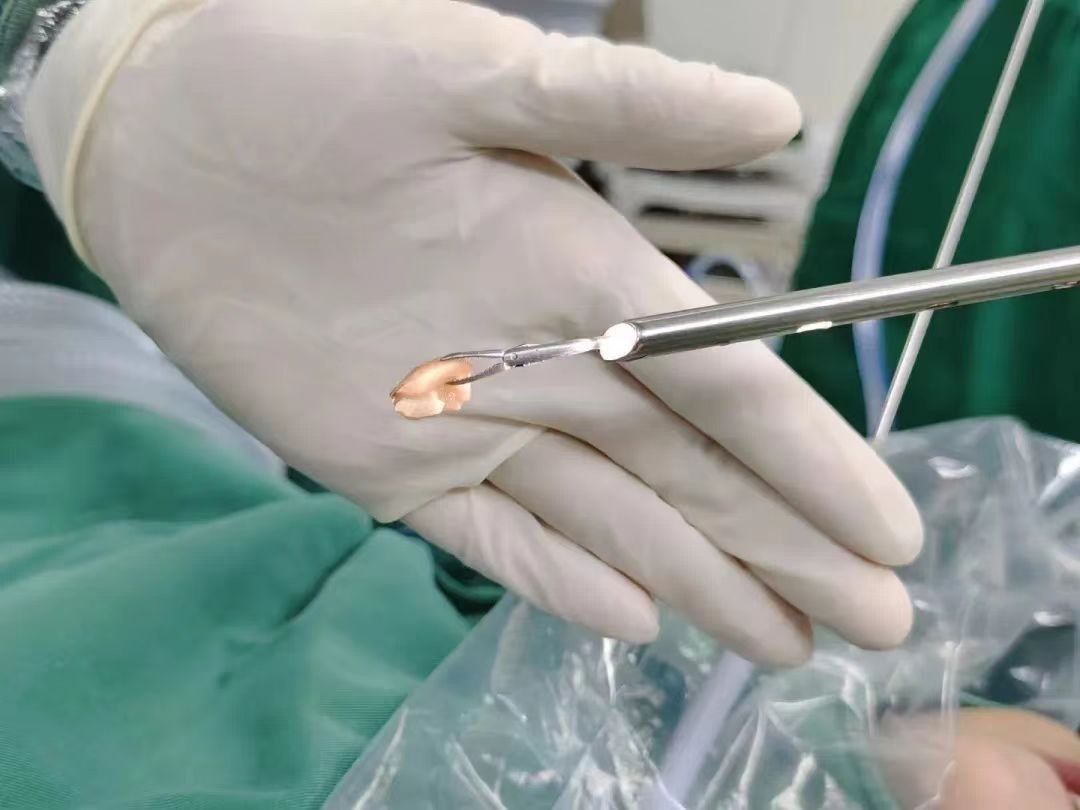 明确了手术方式,温丽慧与黎必万两位主任的团队通力合作、默契地配合,在生死时速的5分钟里,顺利为小洪取出了嵌顿在支气管的半块花生,小洪的呼吸通道得以恢复畅通,脱离危险。
