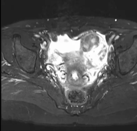 “子宫平滑肌瘤是育龄妇女最常见的妇科肿瘤,常见症状包括下腹痛、腹胀、子宫异常出血、腰背痛、痛经和盆腔压迫症状等。有蒂浆膜下平滑肌瘤的扭转是一种罕见的急腹症表现,引起疼痛通常由于急性变性。”妇科主任米建锋介绍说。