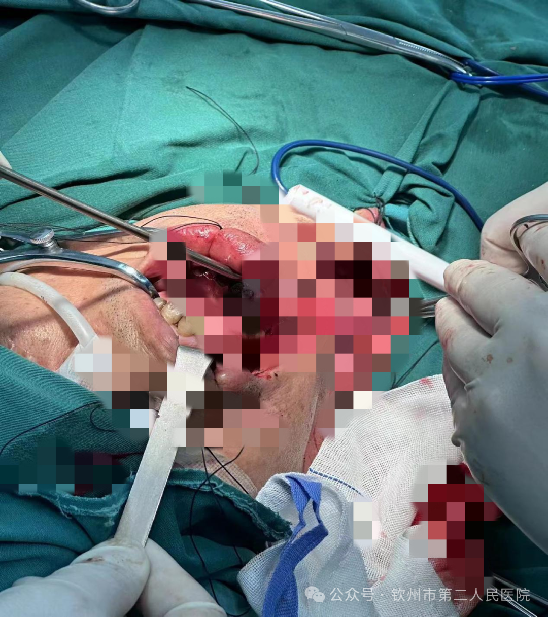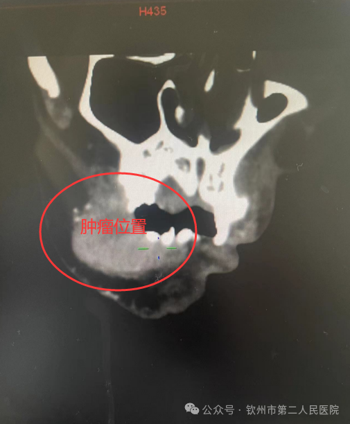 1个月前,62岁的程伯(化名)因右侧口颊粘膜长了巨大肿物出现反复口腔疼痛、张口受限,并出现反复出血。程伯来到我院耳鼻咽喉头颈外科二病区就诊,科主任吕忠对程伯的病情非常重视,立即对程伯的症状和体征进行详细分析,并完善了相关检查。肿物组织的病理检查回报:右侧口颊粘膜癌,CT提示肿瘤累及大部分右侧口颊粘膜。