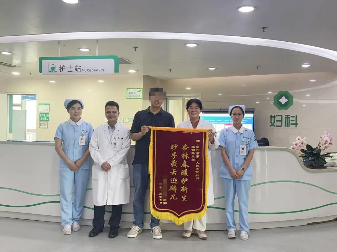 近日,产妇家属邓先生(化名)分别将两面绣有“杏林春暖护新生,妙手裁云迎麟儿”“仁心仁术护母婴,情系患者如至亲”的锦旗送至妇科陈丽华主任和产科胡芸主任及全体医护手中,以表达对医护人员全程守护的感激之情。这两面锦旗背后,凝聚着产妇从备孕到分娩再到产后护理的温暖故事,展现了妇科、产科医护人员以专业与爱心守护母婴健康的责任担当。