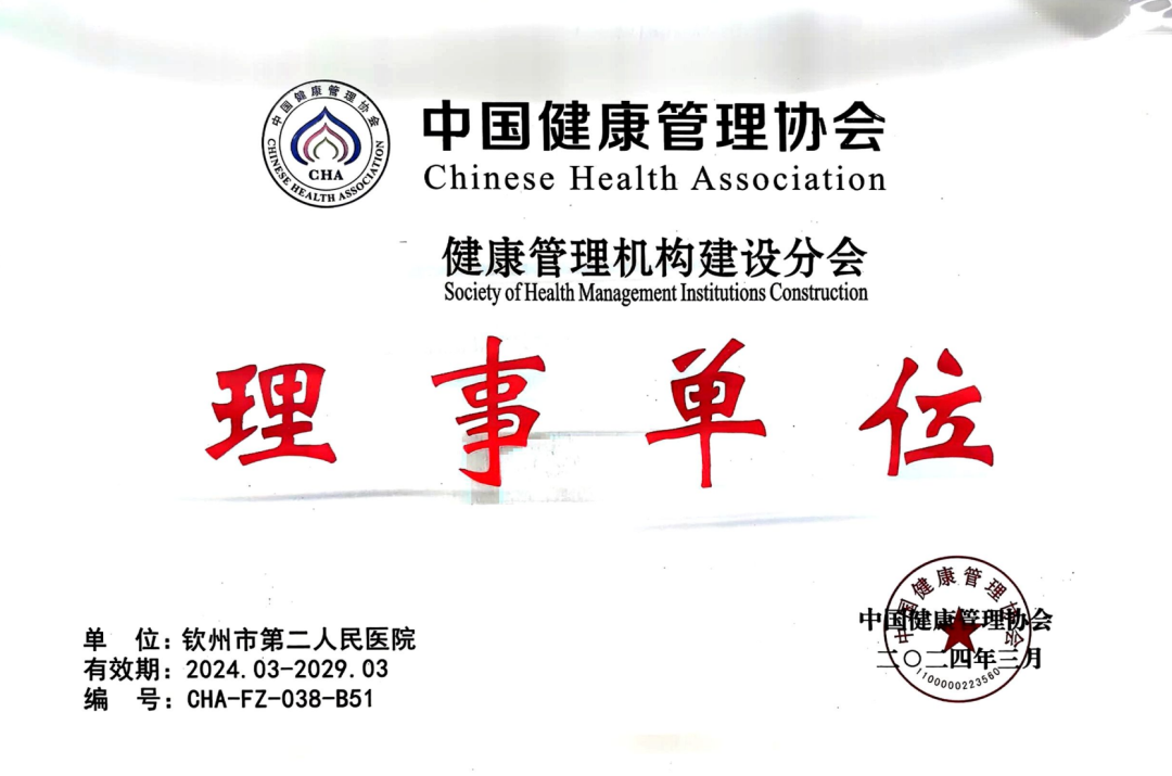【钦二医喜讯】我院健康管理中心当选中国健康管理协会健康管理机构建设分会理事单位