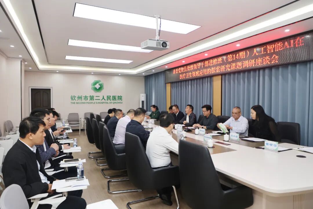 10月22日,市委党校县处级领导干部进修班(第14期)调研组一行赴我院开展《人工智能AI在医疗卫生领域应用的探索研究》课题调研。会上,市卫生健康委负责同志首先从人工智能赋能卫生健康领域的成效、实现医院高质量发展AI赋能方面存在的问题、卫生健康信息化建设的规划等三个方面展开介绍。随后,钦州市市直三甲医院相关分管同志分别介绍各个医院AI+医学的应用现状及规划。与会人员踊跃发言,纷纷发表各自对AI应用,赋能千行百业的看法及思考。会后,课题组一行现场参观了我院放射科AI+影像诊断的具体实现,亲身感受AI赋能影像诊断的高效与准确性。