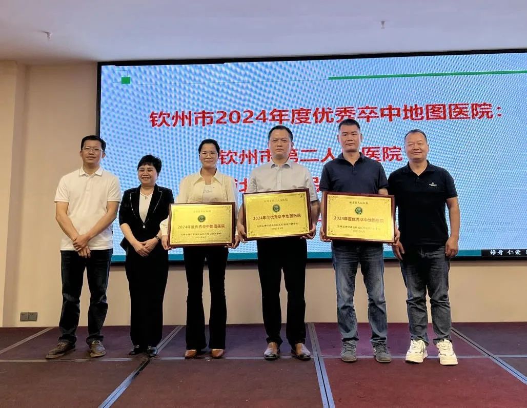 随后,对钦州市2024年度优秀卒中地图医院进行评选,本次评选采用“三维评估矩阵”的方式进行评比,即急救响应时效、区域协同效率、质控数据达标率等指标进行评分,最终钦州市第二人民医院、浦北县人民医院、灵山县中医医院三家单位脱颖而出,获评钦州市2024年度优秀卒中地图医院。