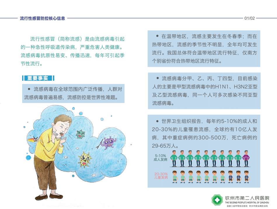 正确认识流感(一)——流行性感冒防控核心信息 2019-11-27阅读次数:本文来源: 钦州市第二人民医院 国家卫生健康委员会疾控局指导 | 中国疾病预防控制中心 中国健康教育中心 中国人口福利基金会编制