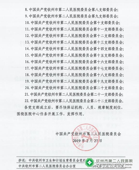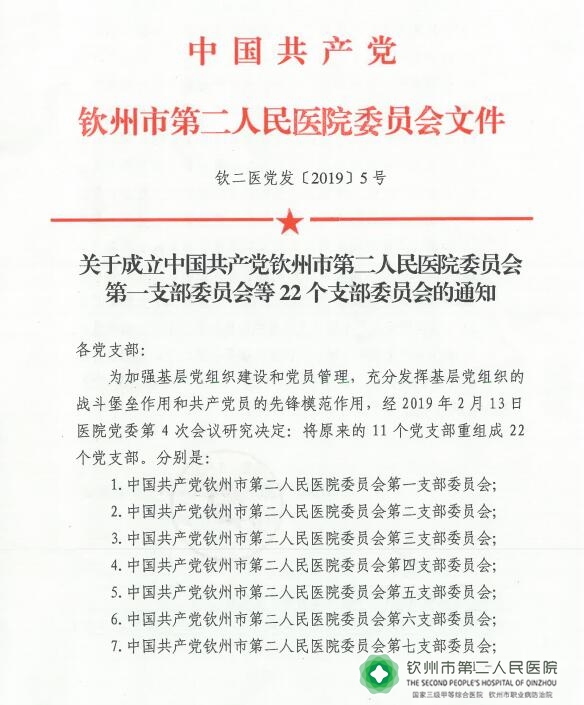 关于成立中国共产党第二人民医院委员会第一党支部等22个支部委员会的通知