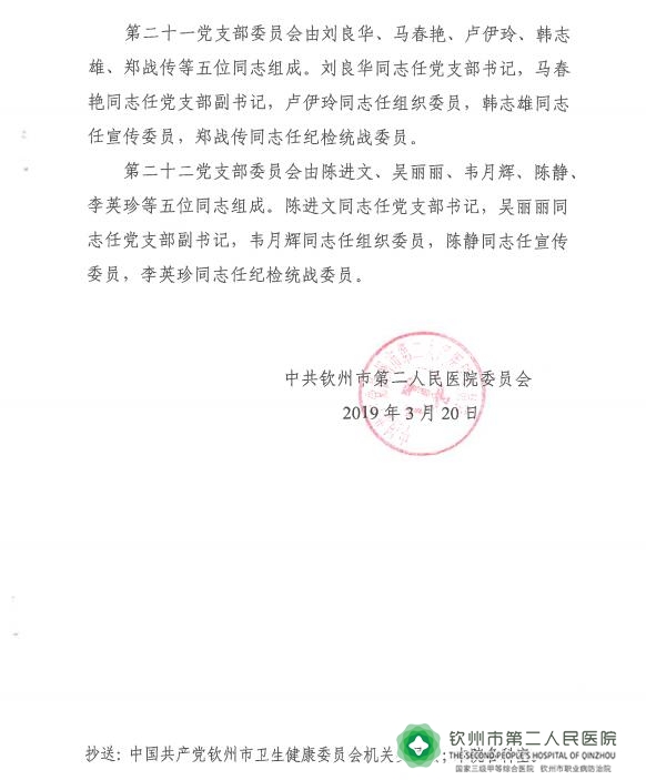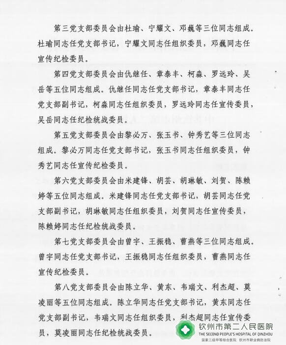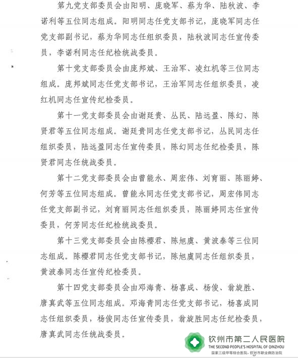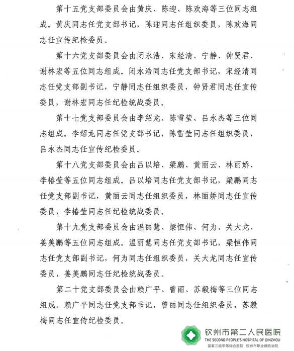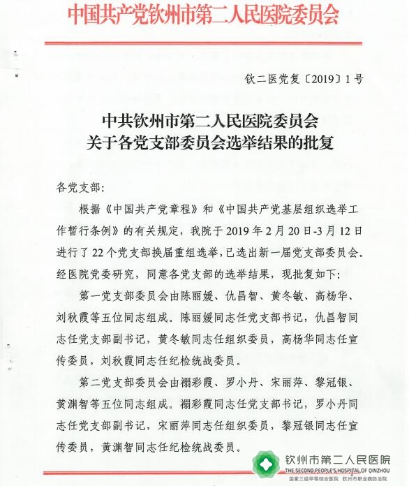 中共钦州市第二人民医院委员会关于各党支部委员会选举结果的批复